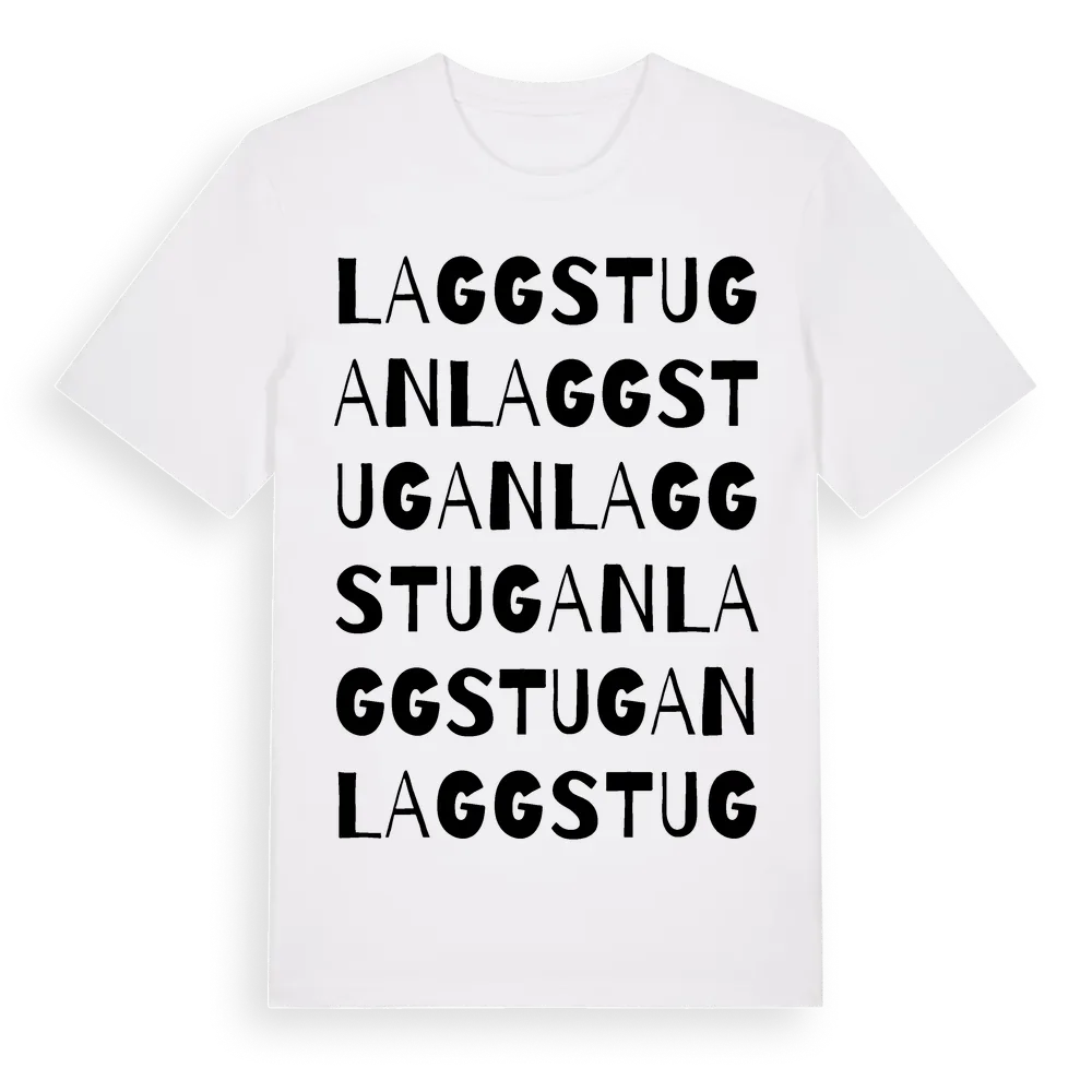 Laggstugan ordlek t-shirt är inspirerad av Laggstugan i Södermanlands län, Sverige. Tröjan är designad för dig som har en speciell koppling till platsen – oavsett om du bor här, har rötterna här eller bara älskar Laggstugan.
