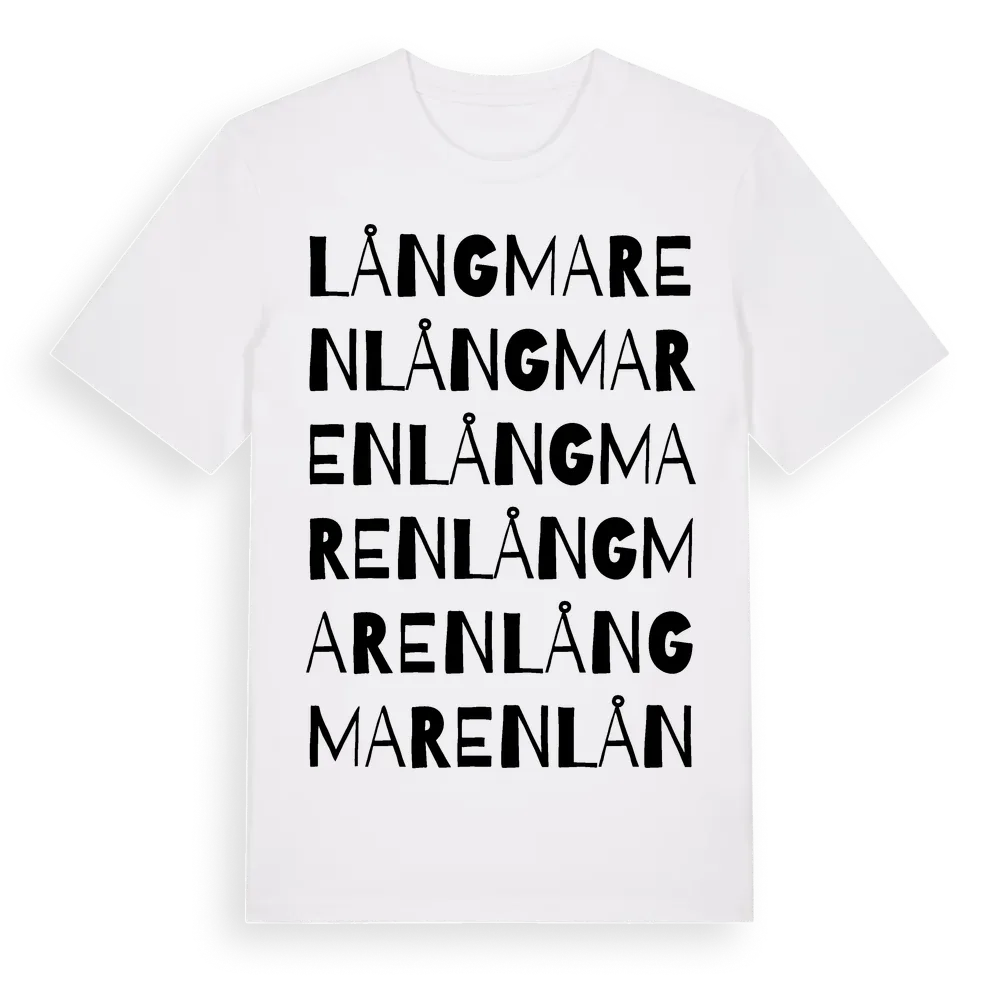 Långmaren ordlek t-shirt är inspirerad av byn Långmaren i Södermanlands län, Sverige. Tröjan är designad för dig som har en speciell koppling till platsen – oavsett om du bor här, har rötterna här eller bara älskar Långmaren.