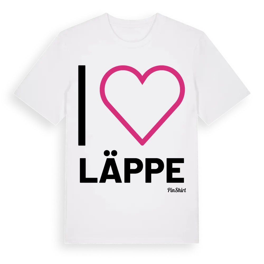 Det klassiska "I ❤ Läppe"-motivet i stort format som täcker hela bröstet. För dig som vill visa kärleken till Läppe på riktigt. Premium bomull, unisex – från byn Läppe i Södermanlands län.