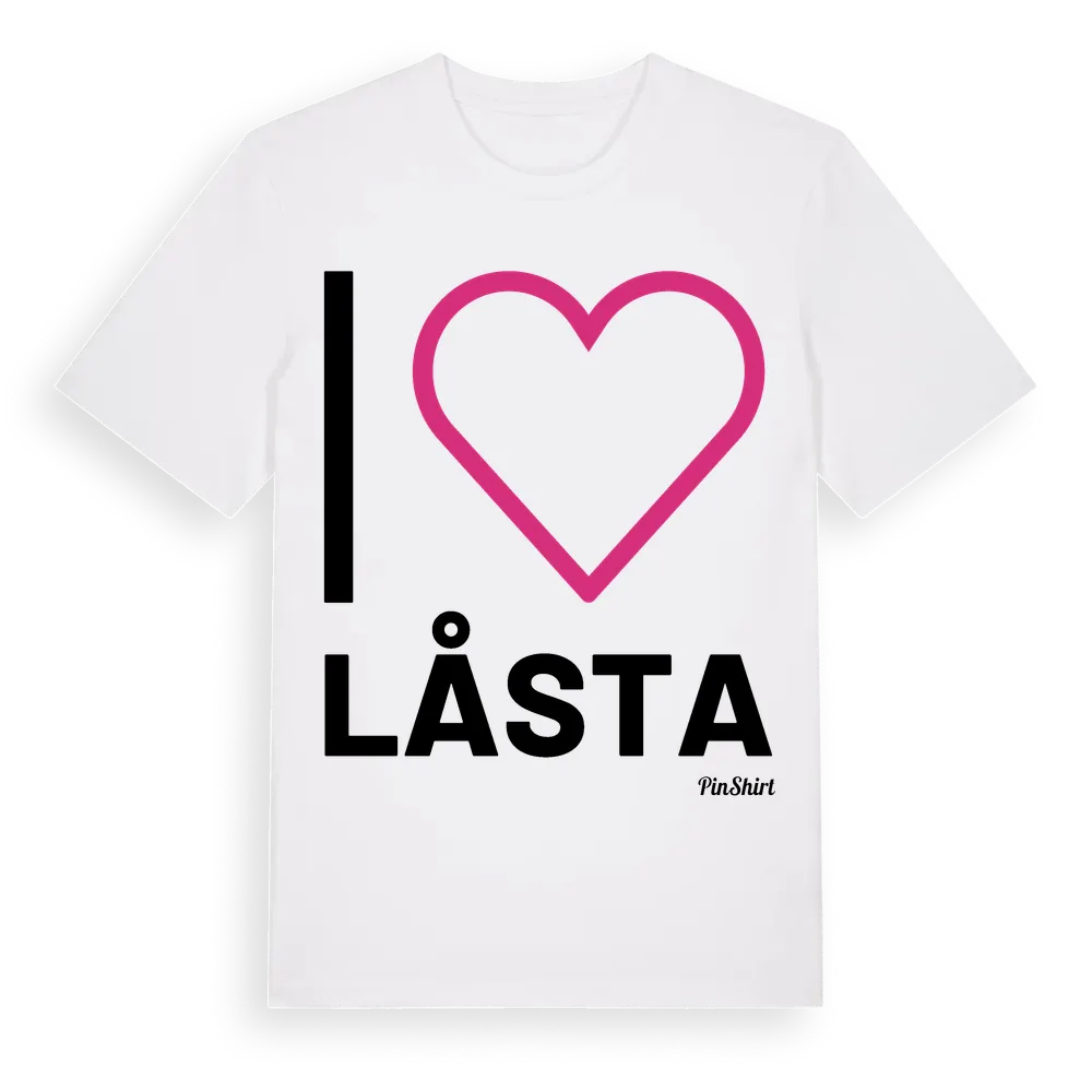 Jag älskar Låsta t-shirt stort tryck är inspirerad av Låsta i Södermanlands län, Sverige. Tröjan är designad för dig som har en speciell koppling till platsen – oavsett om du bor här, har rötterna här eller bara älskar Låsta.
