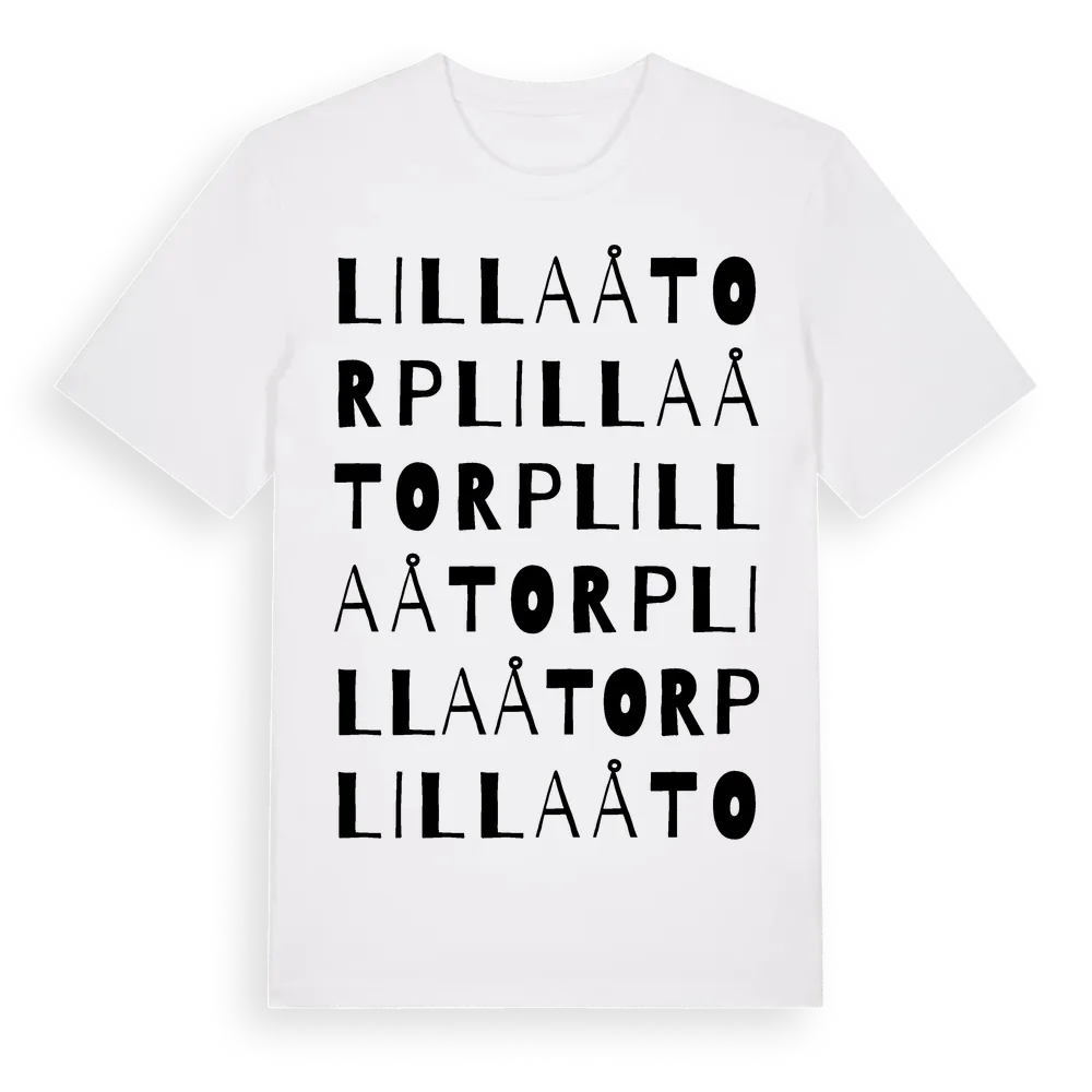 Lilla Åtorp ordlek t-shirt är inspirerad av Lilla Åtorp i Södermanlands län, Sverige. Tröjan är designad för dig som har en speciell koppling till platsen – oavsett om du bor här, har rötterna här eller bara älskar Lilla Åtorp.
