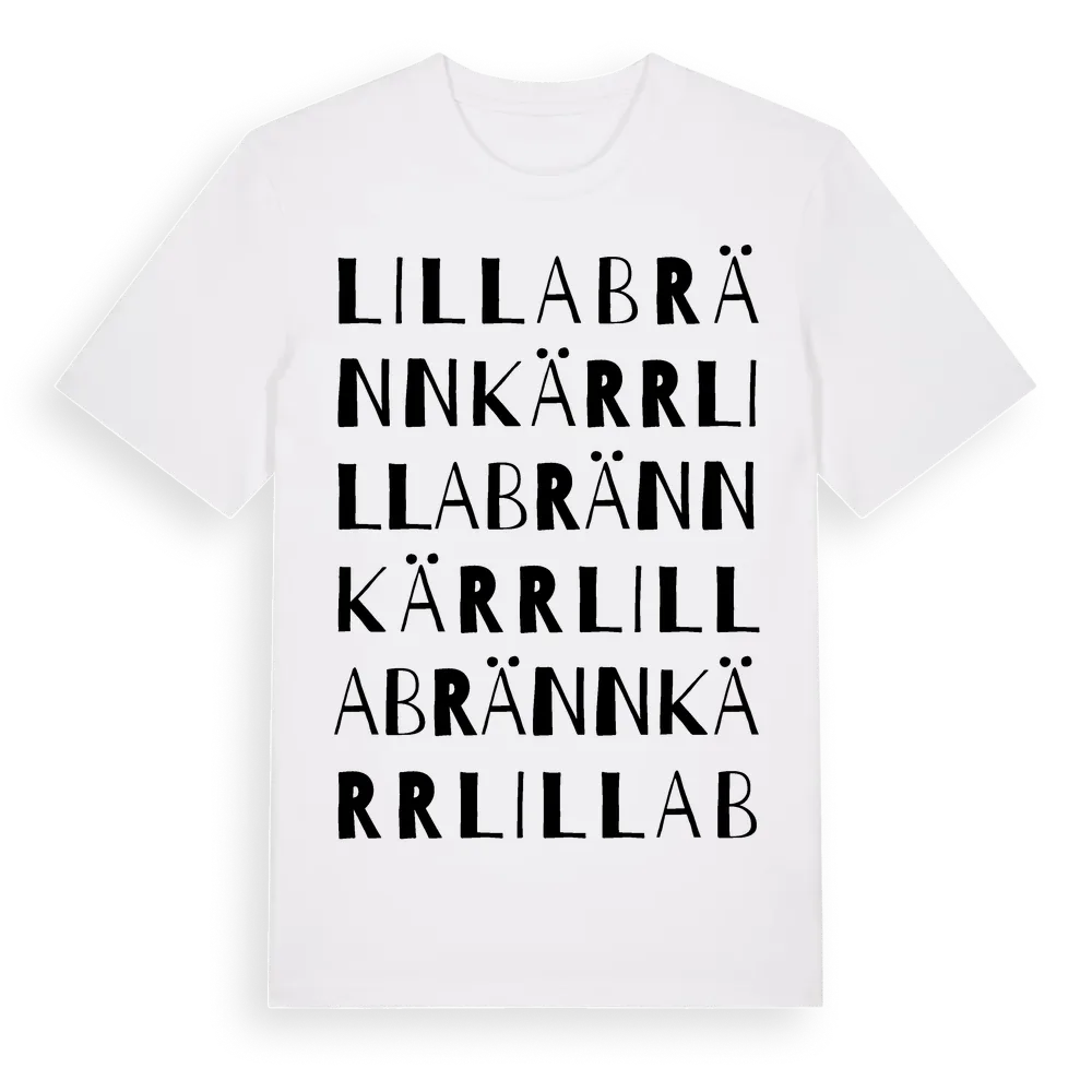 Lilla Brännkärr ordlek t-shirt är inspirerad av Lilla Brännkärr i Södermanlands län, Sverige. Tröjan är designad för dig som har en speciell koppling till platsen – oavsett om du bor här, har rötterna här eller bara älskar Lilla Brännkärr.