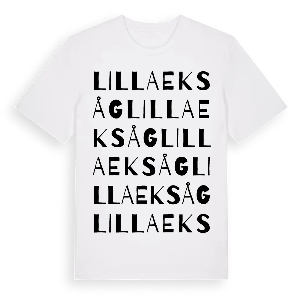 Lilla Eksåg ordlek t-shirt är inspirerad av Lilla Eksåg i Södermanlands län, Sverige. Tröjan är designad för dig som har en speciell koppling till platsen – oavsett om du bor här, har rötterna här eller bara älskar Lilla Eksåg.