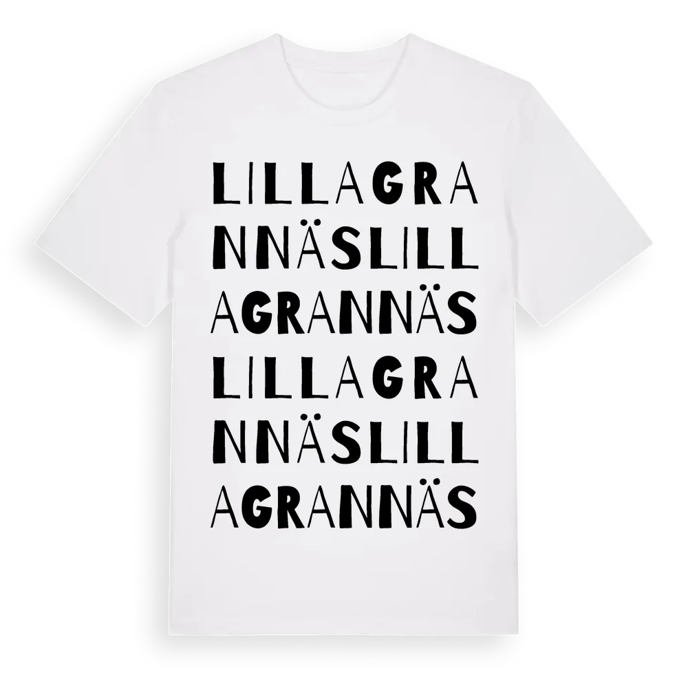 Lilla Grannäs ordlek t-shirt är inspirerad av Lilla Grannäs i Södermanlands län, Sverige. Tröjan är designad för dig som har en speciell koppling till platsen – oavsett om du bor här, har rötterna här eller bara älskar Lilla Grannäs.