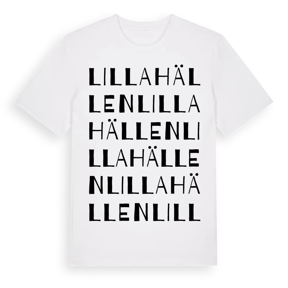 Lilla Hällen ordlek t-shirt är inspirerad av Lilla Hällen i Södermanlands län, Sverige. Tröjan är designad för dig som har en speciell koppling till platsen – oavsett om du bor här, har rötterna här eller bara älskar Lilla Hällen.