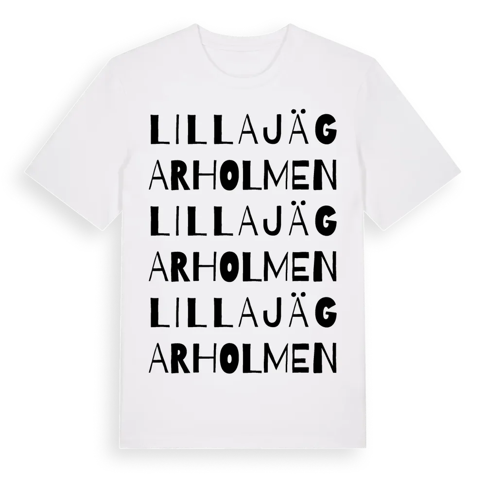 Lilla Jägarholmen ordlek t-shirt är inspirerad av Lilla Jägarholmen i Södermanlands län, Sverige. Tröjan är designad för dig som har en speciell koppling till platsen – oavsett om du bor här, har rötterna här eller bara älskar Lilla Jägarholmen.
