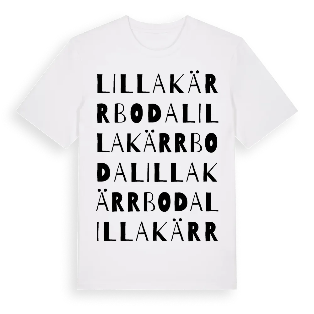Lilla Kärrboda ordlek t-shirt är inspirerad av Lilla Kärrboda i Södermanlands län, Sverige. Tröjan är designad för dig som har en speciell koppling till platsen – oavsett om du bor här, har rötterna här eller bara älskar Lilla Kärrboda.