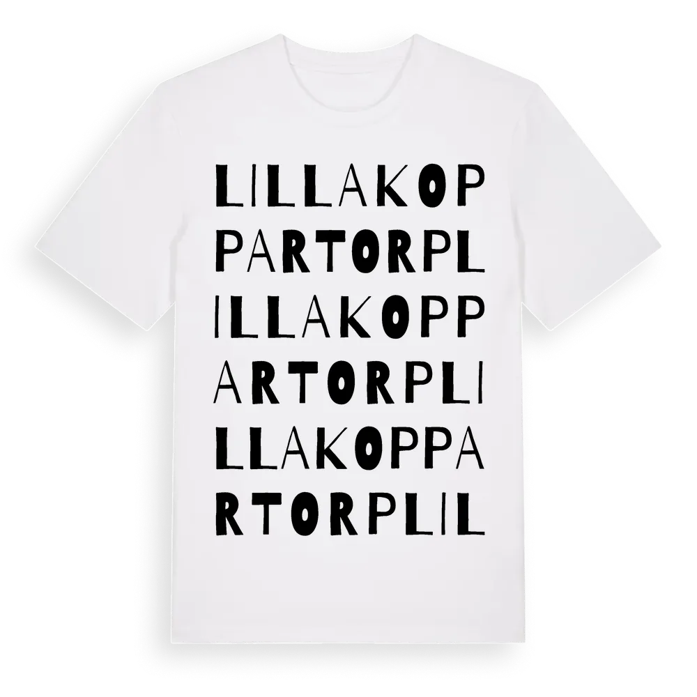 Lilla Koppartorp ordlek t-shirt är inspirerad av Lilla Koppartorp i Södermanlands län, Sverige. Tröjan är designad för dig som har en speciell koppling till platsen – oavsett om du bor här, har rötterna här eller bara älskar Lilla Koppartorp.