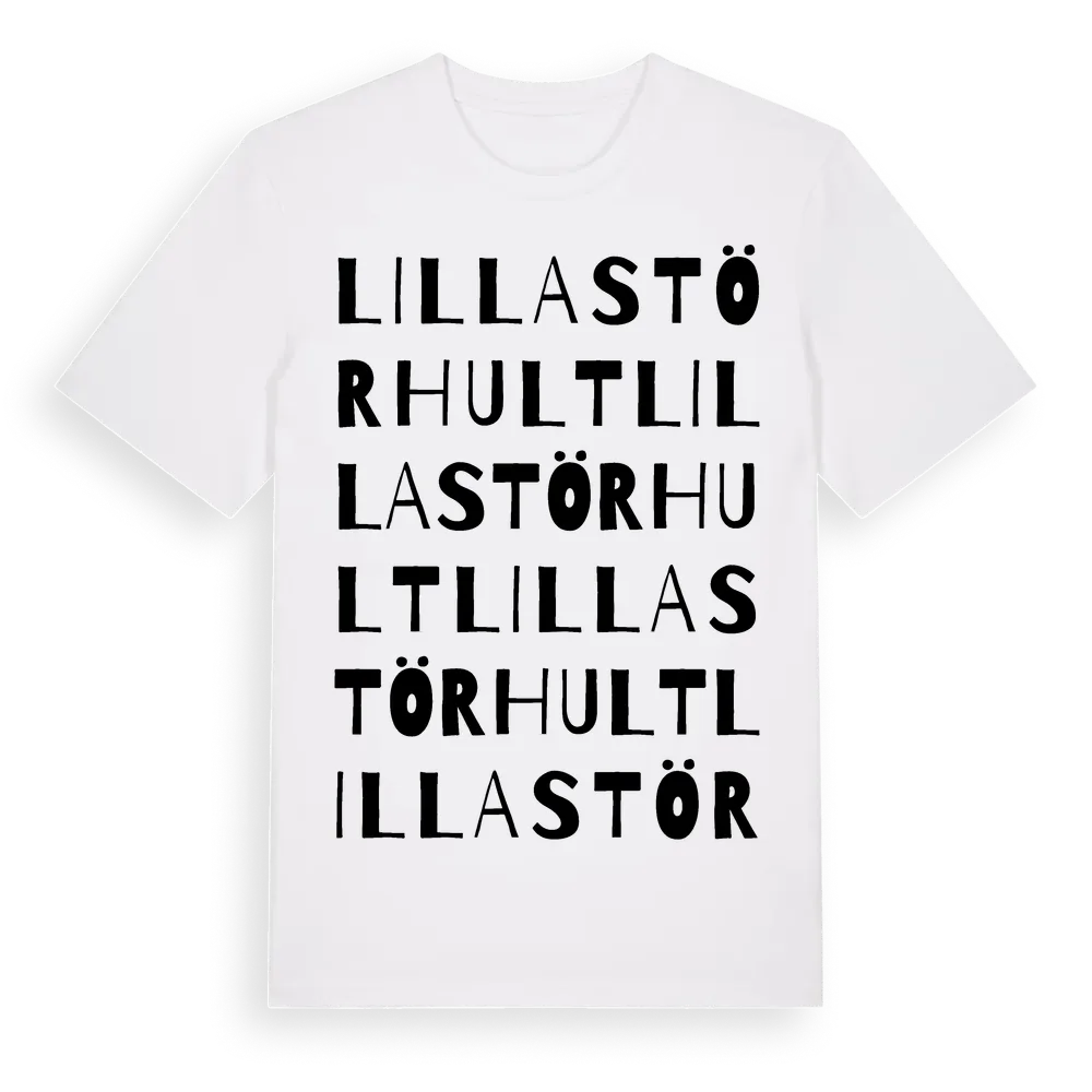 Lilla Störhult ordlek t-shirt är inspirerad av Lilla Störhult i Södermanlands län, Sverige. Tröjan är designad för dig som har en speciell koppling till platsen – oavsett om du bor här, har rötterna här eller bara älskar Lilla Störhult.