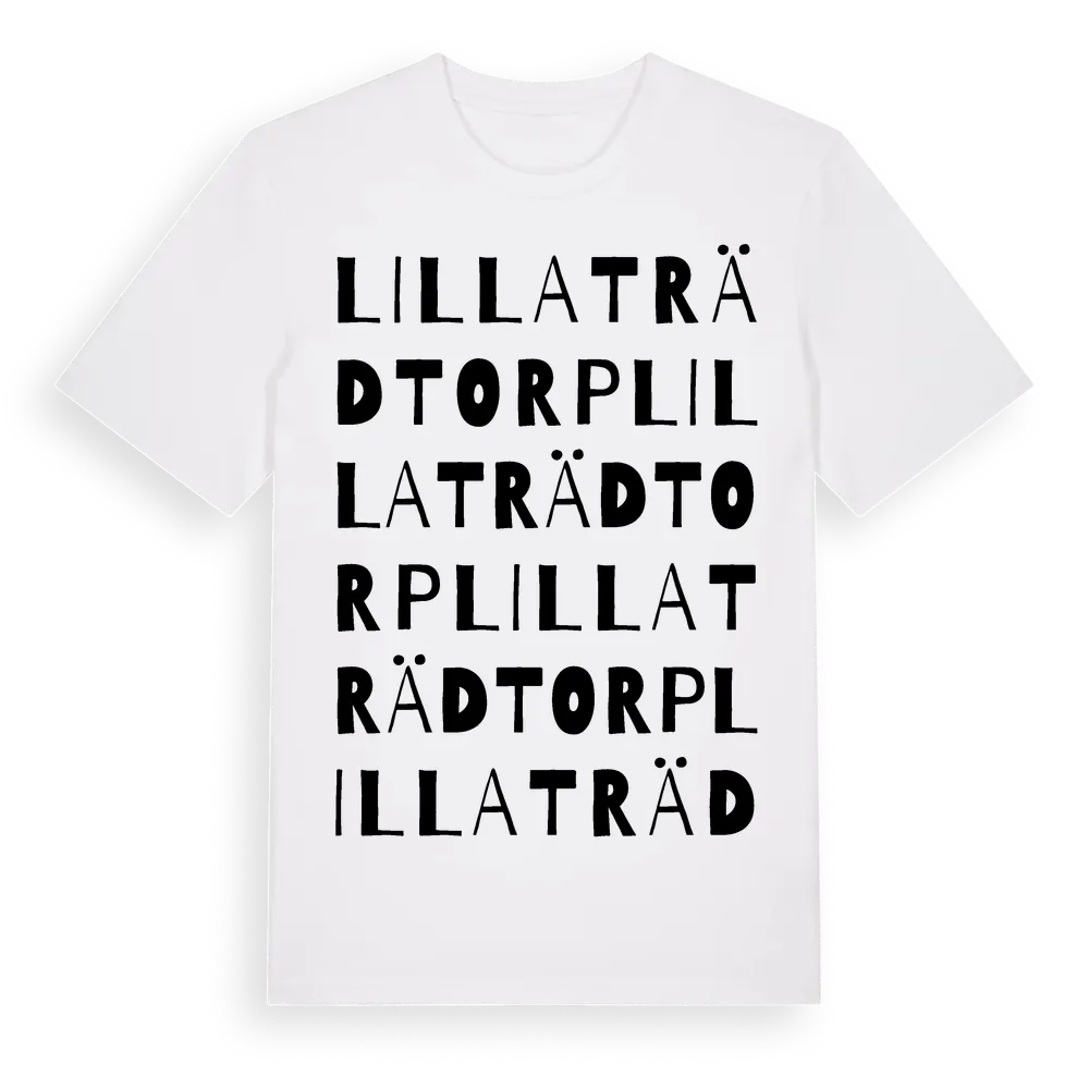 Lilla Trädtorp ordlek t-shirt är inspirerad av Lilla Trädtorp i Södermanlands län, Sverige. Tröjan är designad för dig som har en speciell koppling till platsen – oavsett om du bor här, har rötterna här eller bara älskar Lilla Trädtorp.