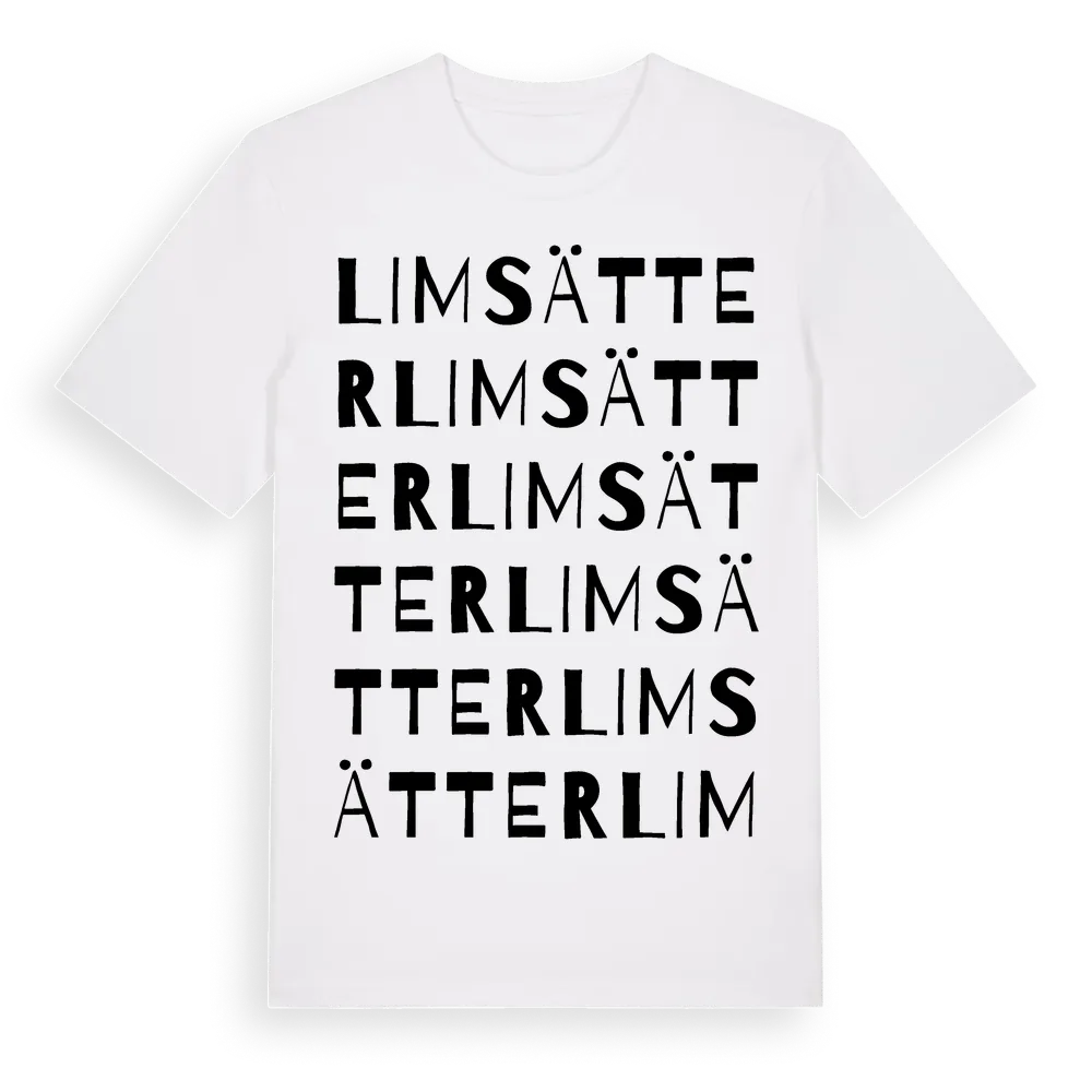 Limsätter ordlek t-shirt är inspirerad av Limsätter i Södermanlands län, Sverige. Tröjan är designad för dig som har en speciell koppling till platsen – oavsett om du bor här, har rötterna här eller bara älskar Limsätter.