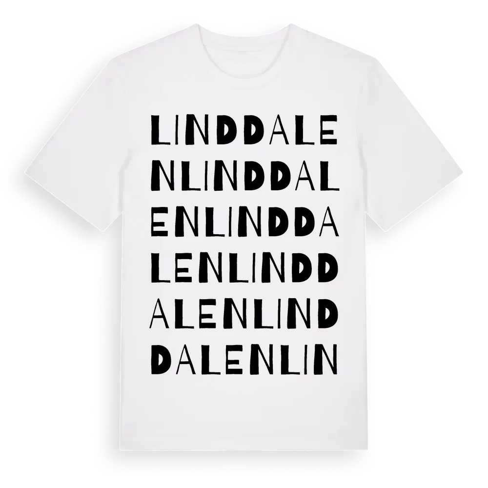 Linddalen ordlek t-shirt är inspirerad av Linddalen i Södermanlands län, Sverige. Tröjan är designad för dig som har en speciell koppling till platsen – oavsett om du bor här, har rötterna här eller bara älskar Linddalen.