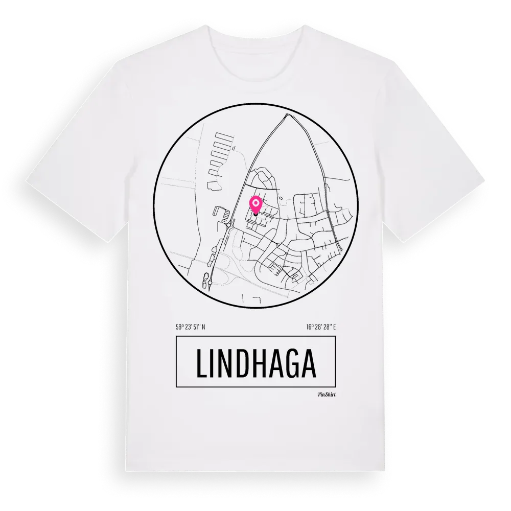 Ett rent, runt tryck med Lindhagas namn. Minimalistiskt och stilrent – perfekt för den som känner platsen utan att skrika det. Premium bomull, unisex – från stadsdelen Lindhaga i Södermanlands län.
