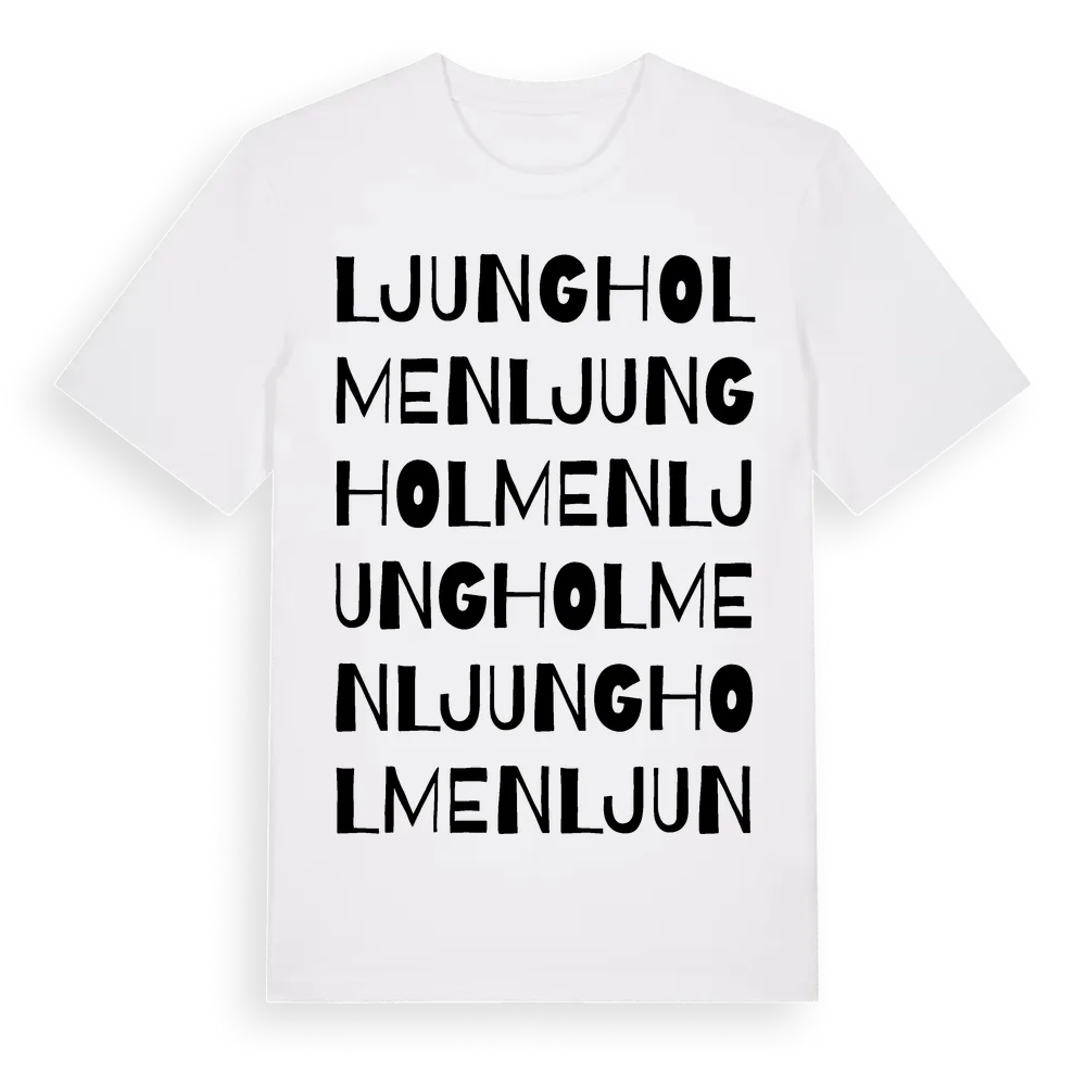 Ljungholmen ordlek t-shirt är inspirerad av Ljungholmen i Södermanlands län, Sverige. Tröjan är designad för dig som har en speciell koppling till platsen – oavsett om du bor här, har rötterna här eller bara älskar Ljungholmen.