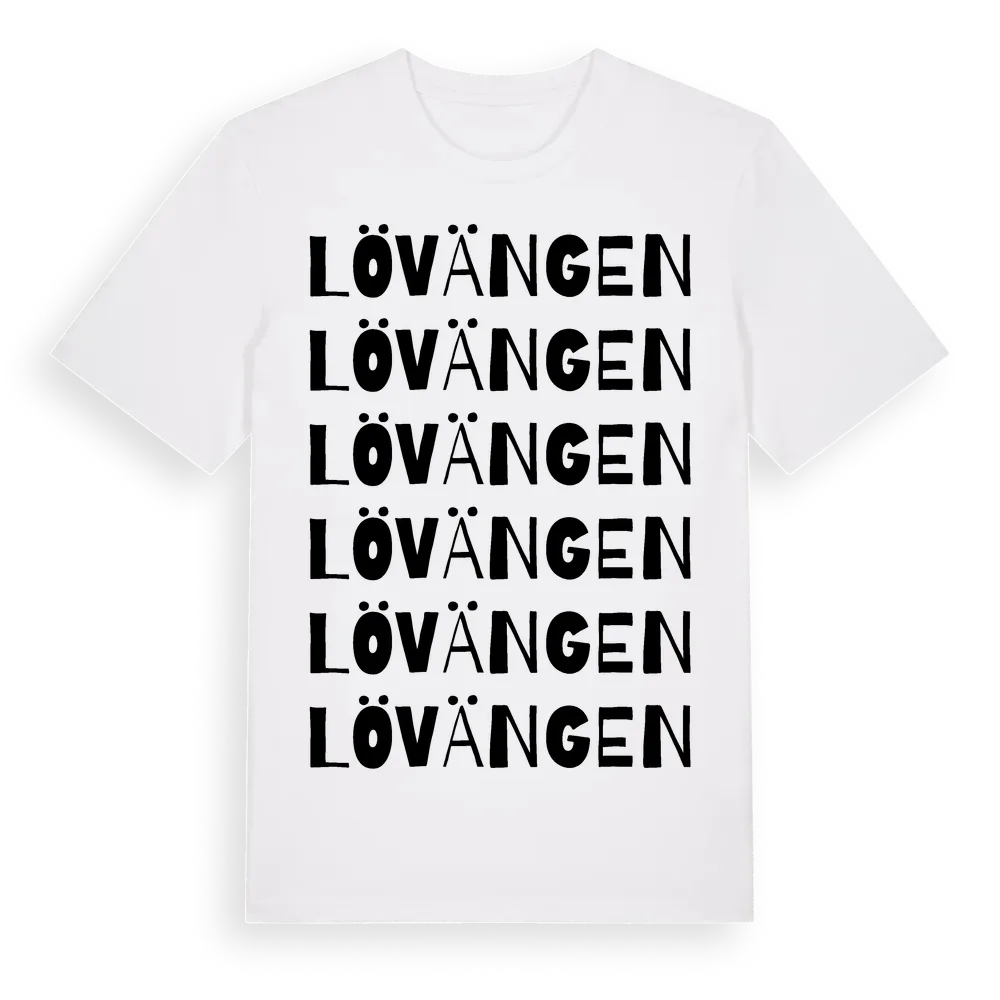 Lövängen ordlek t-shirt är inspirerad av Lövängen i Södermanlands län, Sverige. Tröjan är designad för dig som har en speciell koppling till platsen – oavsett om du bor här, har rötterna här eller bara älskar Lövängen.