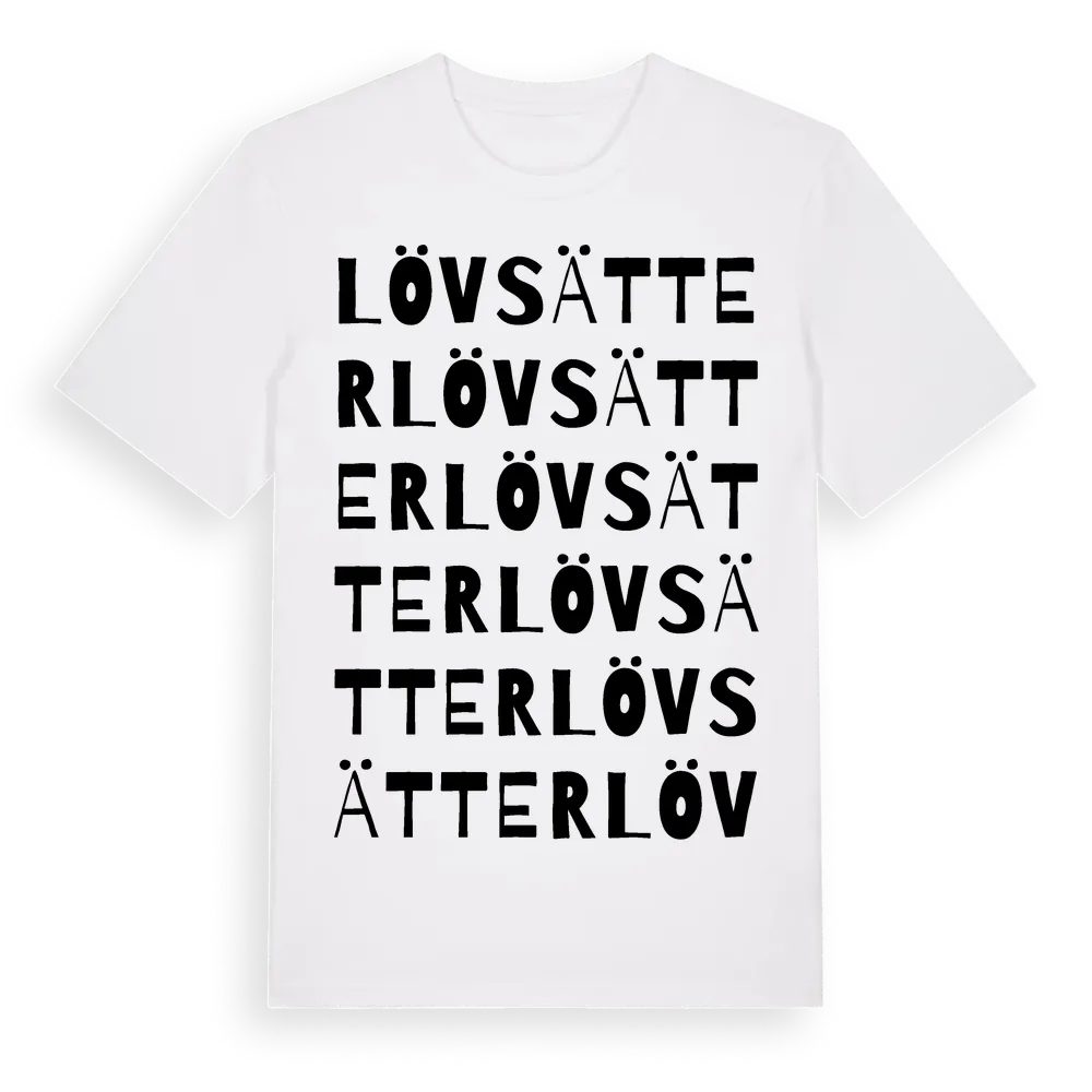 Lövsätter ordlek t-shirt är inspirerad av Lövsätter i Södermanlands län, Sverige. Tröjan är designad för dig som har en speciell koppling till platsen – oavsett om du bor här, har rötterna här eller bara älskar Lövsätter.