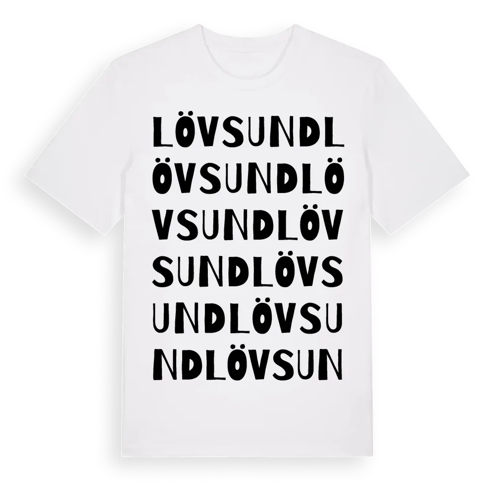 Lövsund ordlek t-shirt är inspirerad av Lövsund i Södermanlands län, Sverige. Tröjan är designad för dig som har en speciell koppling till platsen – oavsett om du bor här, har rötterna här eller bara älskar Lövsund.