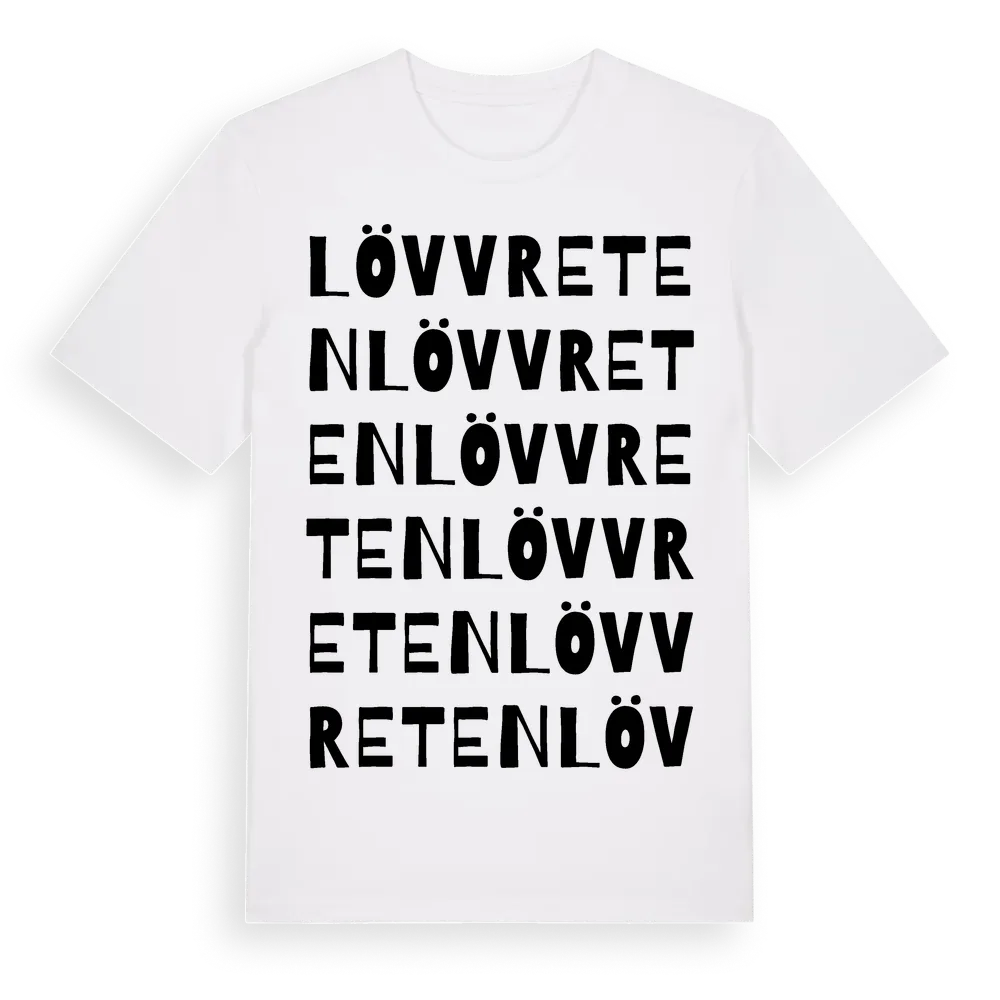 Lövvreten ordlek t-shirt är inspirerad av Lövvreten i Södermanlands län, Sverige. Tröjan är designad för dig som har en speciell koppling till platsen – oavsett om du bor här, har rötterna här eller bara älskar Lövvreten.