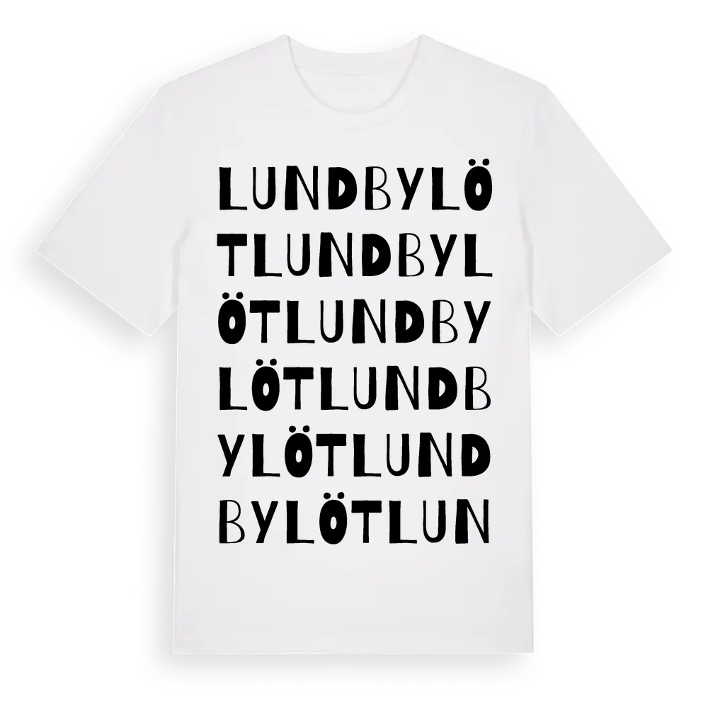 Lundbylöt ordlek t-shirt är inspirerad av Lundbylöt i Södermanlands län, Sverige. Tröjan är designad för dig som har en speciell koppling till platsen – oavsett om du bor här, har rötterna här eller bara älskar Lundbylöt.