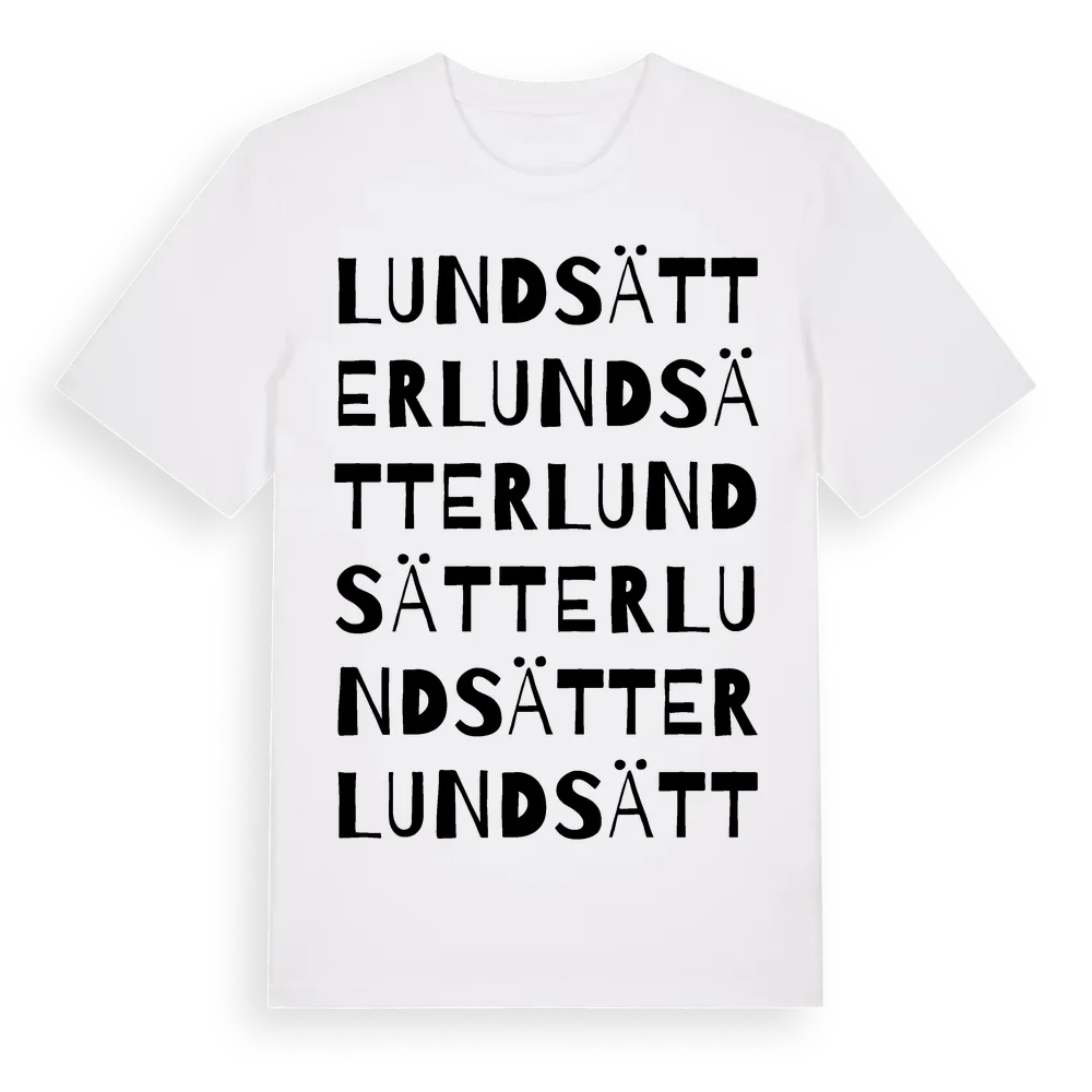 Lundsätter ordlek t-shirt är inspirerad av Lundsätter i Södermanlands län, Sverige. Tröjan är designad för dig som har en speciell koppling till platsen – oavsett om du bor här, har rötterna här eller bara älskar Lundsätter.