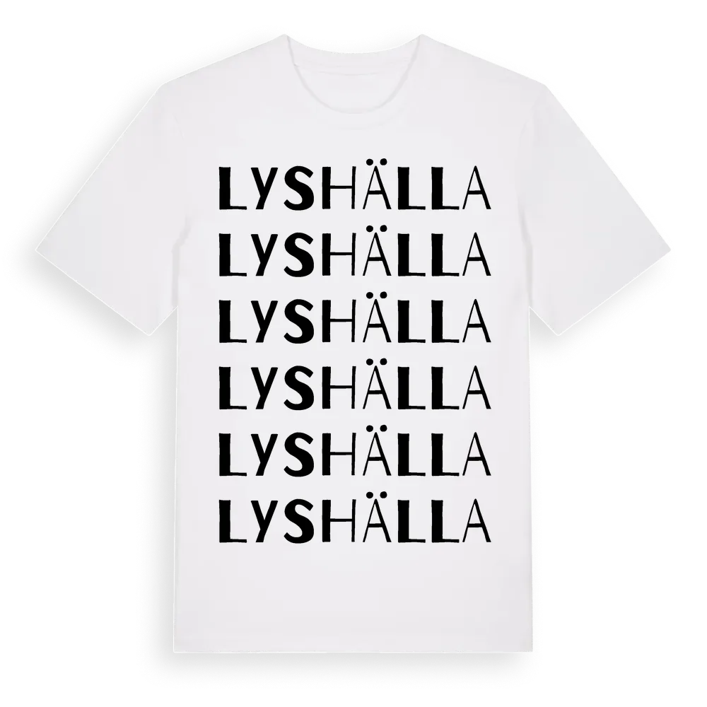 Lyshälla ordlek t-shirt är inspirerad av Lyshälla i Södermanlands län, Sverige. Tröjan är designad för dig som har en speciell koppling till platsen – oavsett om du bor här, har rötterna här eller bara älskar Lyshälla.