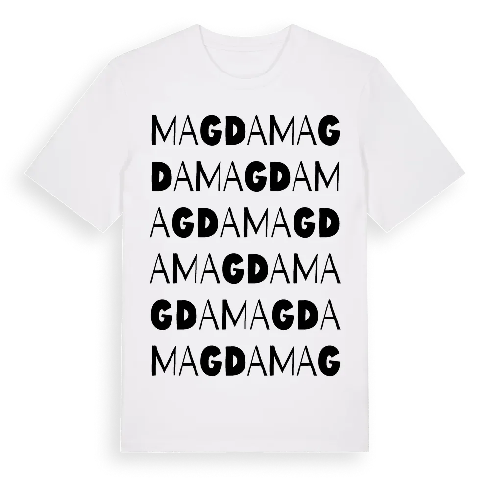 Magda ordlek t-shirt är inspirerad av Magda i Södermanlands län, Sverige. Tröjan är designad för dig som har en speciell koppling till platsen – oavsett om du bor här, har rötterna här eller bara älskar Magda.