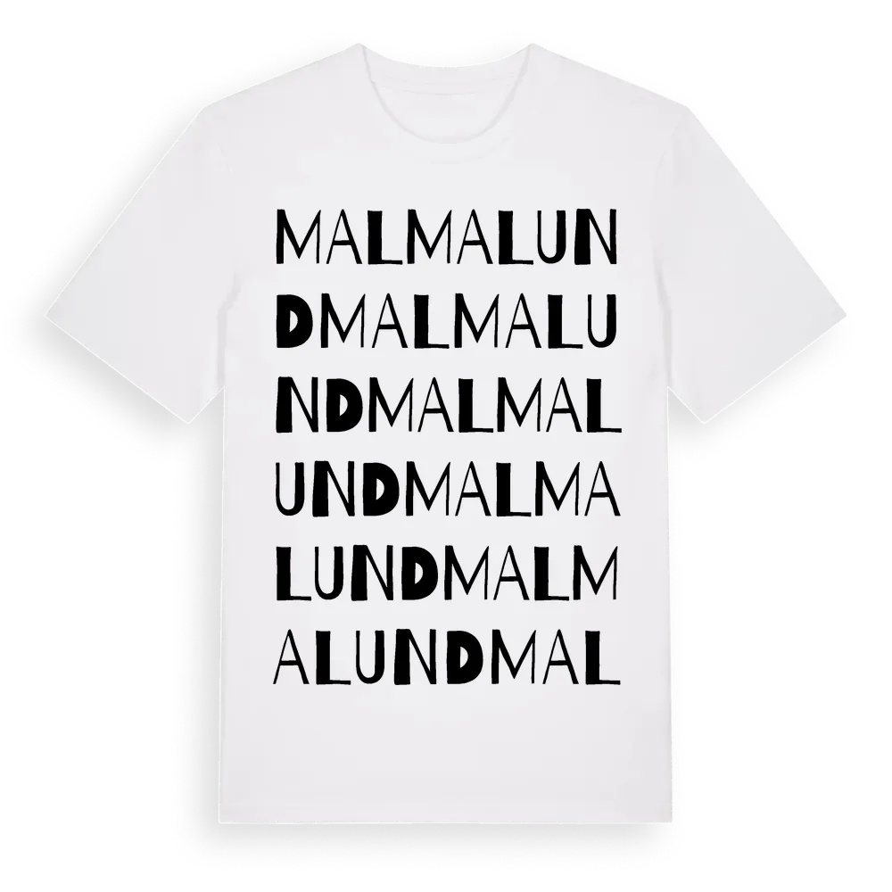 Malmalund ordlek t-shirt är inspirerad av Malmalund i Södermanlands län, Sverige. Tröjan är designad för dig som har en speciell koppling till platsen – oavsett om du bor här, har rötterna här eller bara älskar Malmalund.