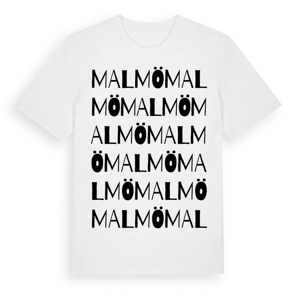 Malmö ordlek t-shirt är inspirerad av Malmö i Södermanlands län, Sverige. Tröjan är designad för dig som har en speciell koppling till platsen – oavsett om du bor här, har rötterna här eller bara älskar Malmö.