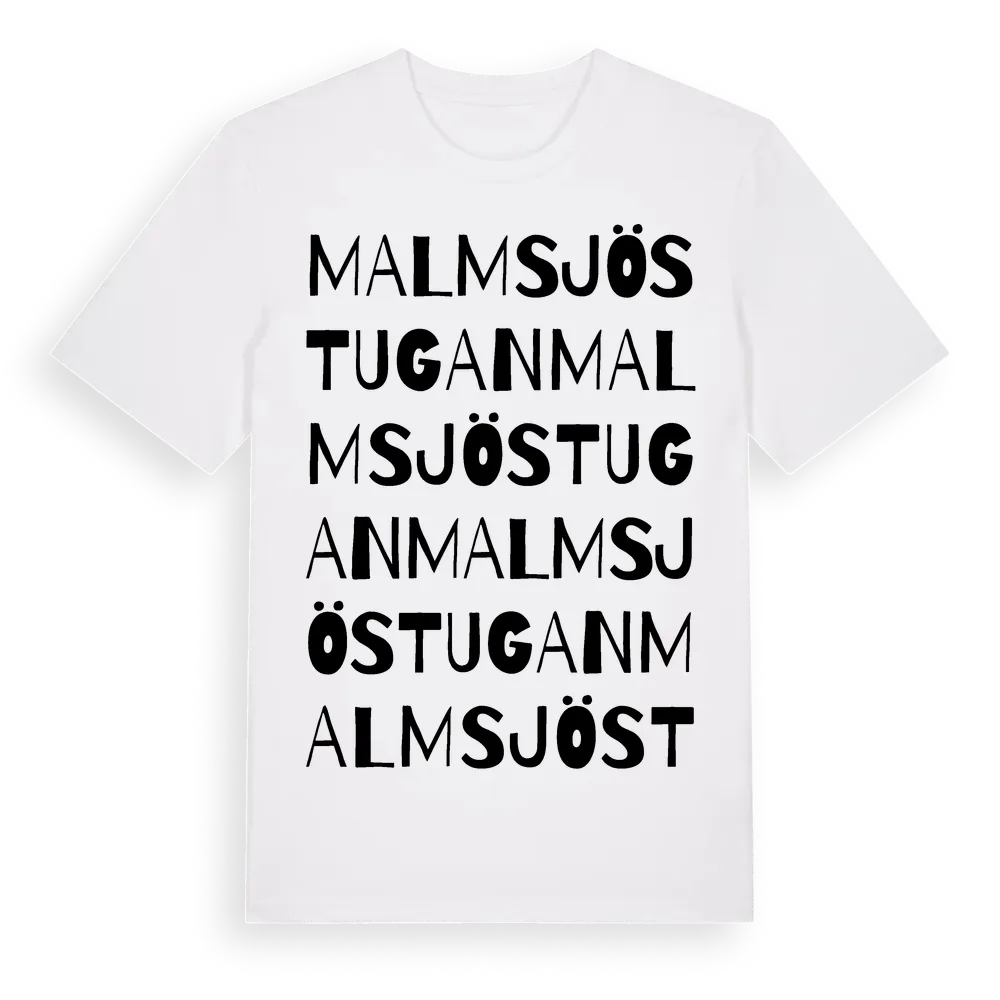Malmsjöstugan ordlek t-shirt är inspirerad av byn Malmsjöstugan i Södermanlands län, Sverige. Tröjan är designad för dig som har en speciell koppling till platsen – oavsett om du bor här, har rötterna här eller bara älskar Malmsjöstugan.