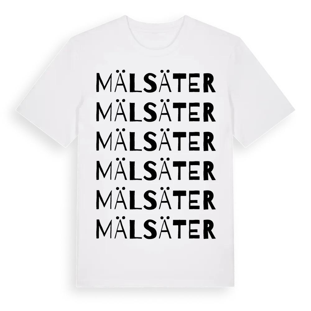 Mälsäter ordlek t-shirt är inspirerad av Mälsäter i Södermanlands län, Sverige. Tröjan är designad för dig som har en speciell koppling till platsen – oavsett om du bor här, har rötterna här eller bara älskar Mälsäter.
