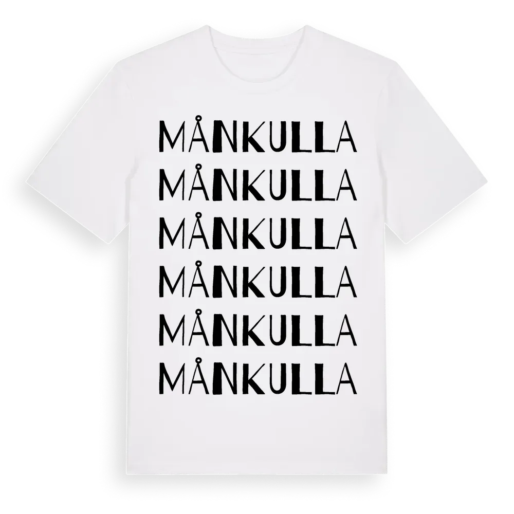 Månkulla ordlek t-shirt är inspirerad av Månkulla i Södermanlands län, Sverige. Tröjan är designad för dig som har en speciell koppling till platsen – oavsett om du bor här, har rötterna här eller bara älskar Månkulla.