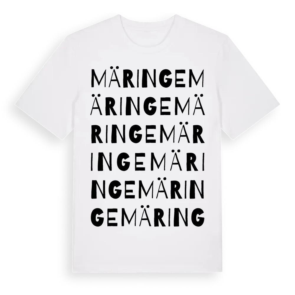 Märinge ordlek t-shirt är inspirerad av Märinge i Södermanlands län, Sverige. Tröjan är designad för dig som har en speciell koppling till platsen – oavsett om du bor här, har rötterna här eller bara älskar Märinge.