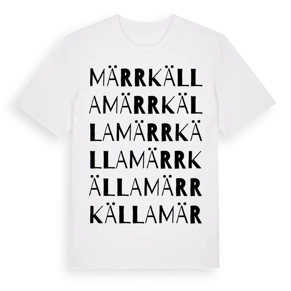 Märrkälla ordlek t-shirt är inspirerad av Märrkälla i Södermanlands län, Sverige. Tröjan är designad för dig som har en speciell koppling till platsen – oavsett om du bor här, har rötterna här eller bara älskar Märrkälla.