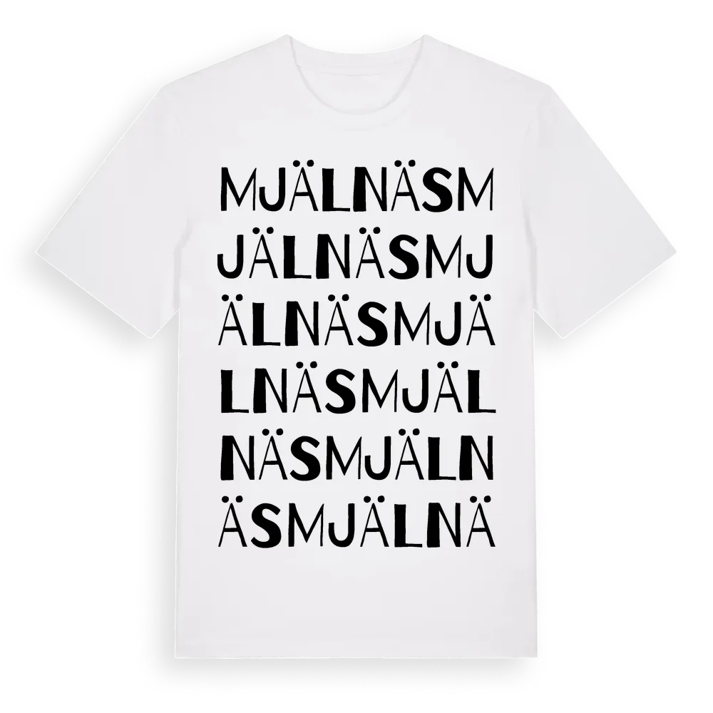Mjälnäs ordlek t-shirt är inspirerad av Mjälnäs i Södermanlands län, Sverige. Tröjan är designad för dig som har en speciell koppling till platsen – oavsett om du bor här, har rötterna här eller bara älskar Mjälnäs.