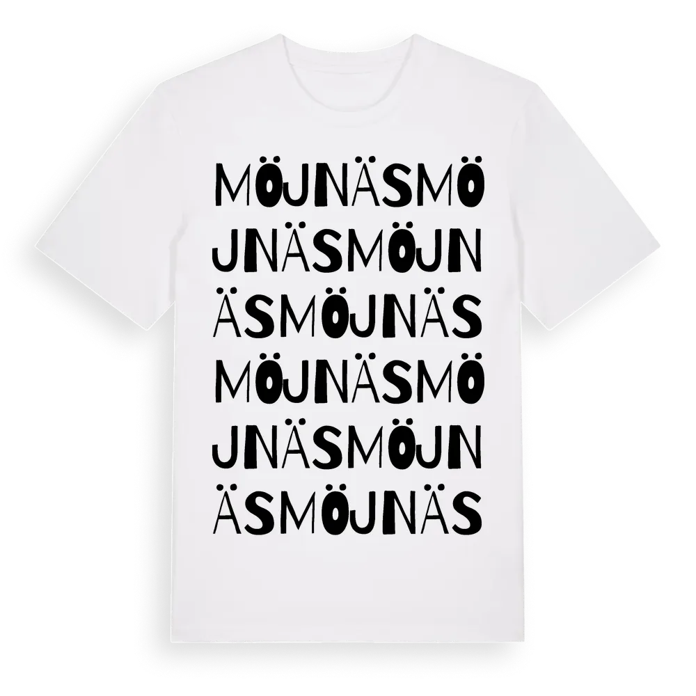 Möjnäs ordlek t-shirt är inspirerad av Möjnäs i Södermanlands län, Sverige. Tröjan är designad för dig som har en speciell koppling till platsen – oavsett om du bor här, har rötterna här eller bara älskar Möjnäs.