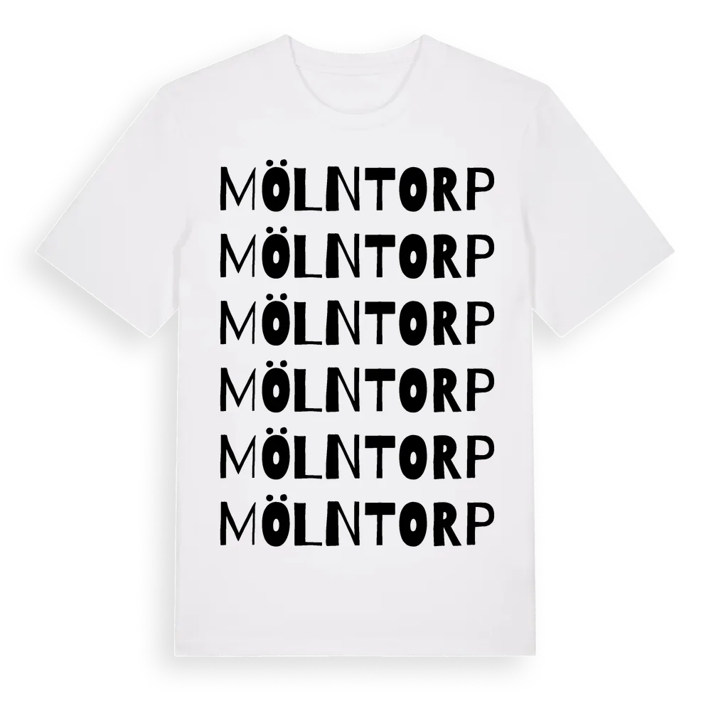 En ordlek byggd på Mölntorps namn. Subtilt och klurig – ett motiv som bara de som verkligen känner platsen fullt ut förstår. Premium bomull, unisex – från byn Mölntorp i Södermanlands län.