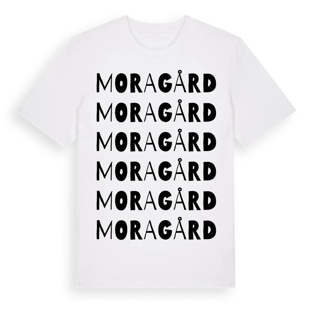 Mora Gård ordlek t-shirt är inspirerad av byn Mora Gård i Södermanlands län, Sverige. Tröjan är designad för dig som har en speciell koppling till platsen – oavsett om du bor här, har rötterna här eller bara älskar Mora Gård.
