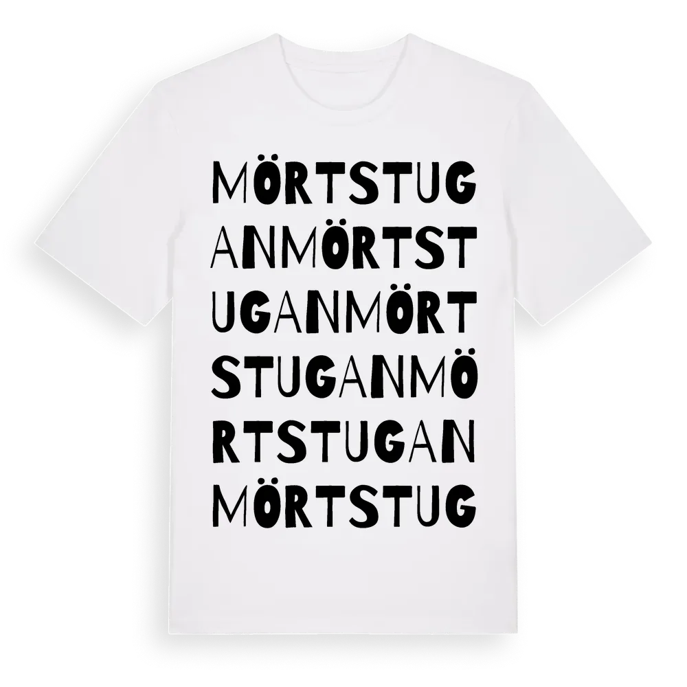 Mörtstugan ordlek t-shirt är inspirerad av Mörtstugan i Södermanlands län, Sverige. Tröjan är designad för dig som har en speciell koppling till platsen – oavsett om du bor här, har rötterna här eller bara älskar Mörtstugan.