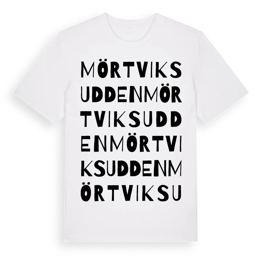 Mörtviksudden ordlek t-shirt är inspirerad av Mörtviksudden i Södermanlands län, Sverige. Tröjan är designad för dig som har en speciell koppling till platsen – oavsett om du bor här, har rötterna här eller bara älskar Mörtviksudden.