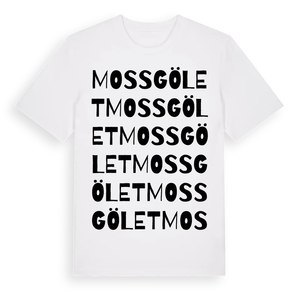 Mossgölet ordlek t-shirt är inspirerad av Mossgölet i Södermanlands län, Sverige. Tröjan är designad för dig som har en speciell koppling till platsen – oavsett om du bor här, har rötterna här eller bara älskar Mossgölet.