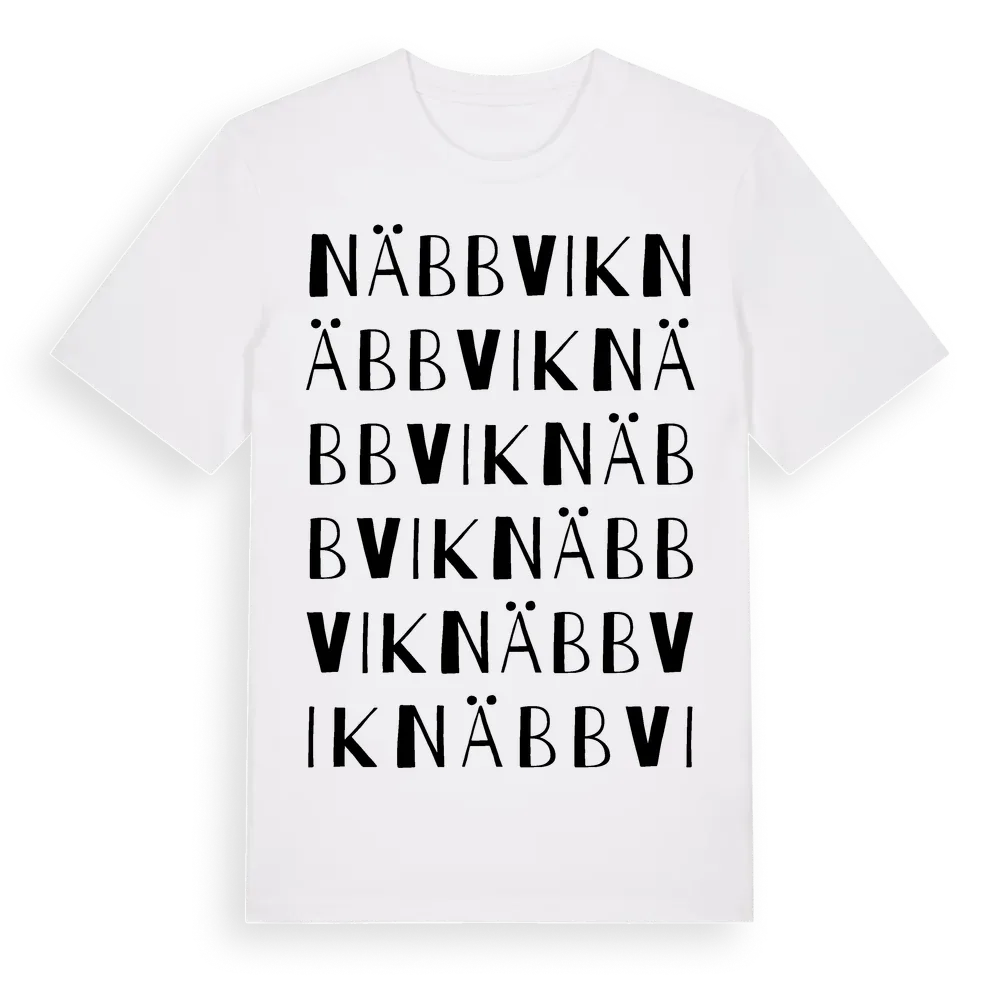 Näbbvik ordlek t-shirt är inspirerad av Näbbvik i Södermanlands län, Sverige. Tröjan är designad för dig som har en speciell koppling till platsen – oavsett om du bor här, har rötterna här eller bara älskar Näbbvik.