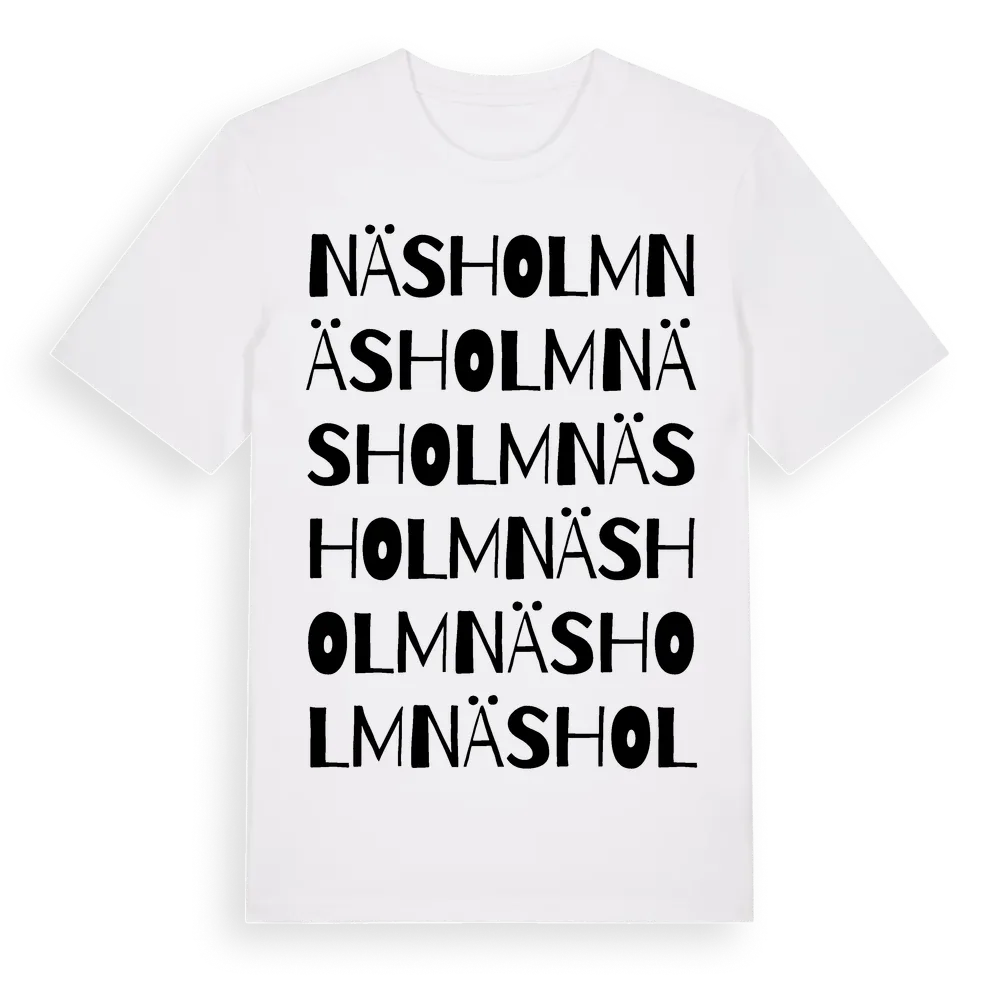 Näsholm ordlek t-shirt är inspirerad av Näsholm i Södermanlands län, Sverige. Tröjan är designad för dig som har en speciell koppling till platsen – oavsett om du bor här, har rötterna här eller bara älskar Näsholm.