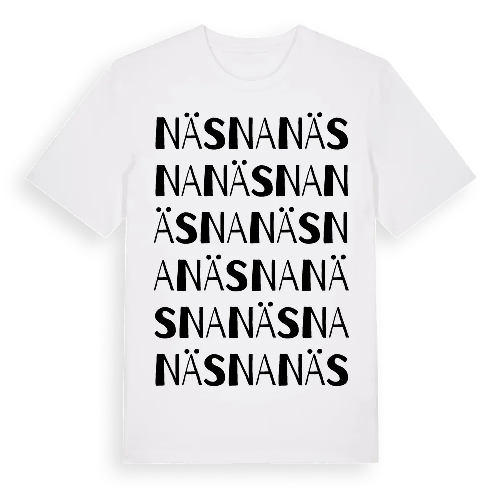 En ordlek byggd på Näsnas namn. Subtilt och klurig – ett motiv som bara de som verkligen känner platsen fullt ut förstår. Premium bomull, unisex – från Näsna i Södermanlands län.