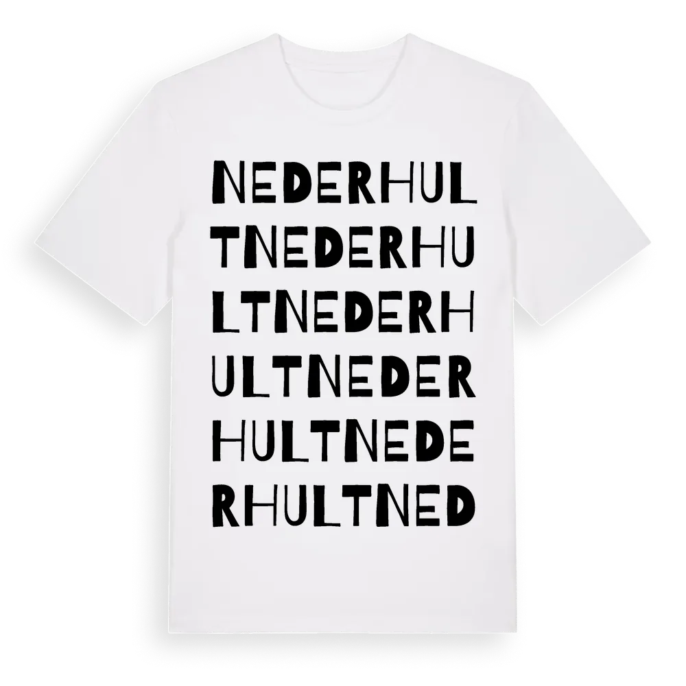 Nederhult ordlek t-shirt är inspirerad av Nederhult i Södermanlands län, Sverige. Tröjan är designad för dig som har en speciell koppling till platsen – oavsett om du bor här, har rötterna här eller bara älskar Nederhult.