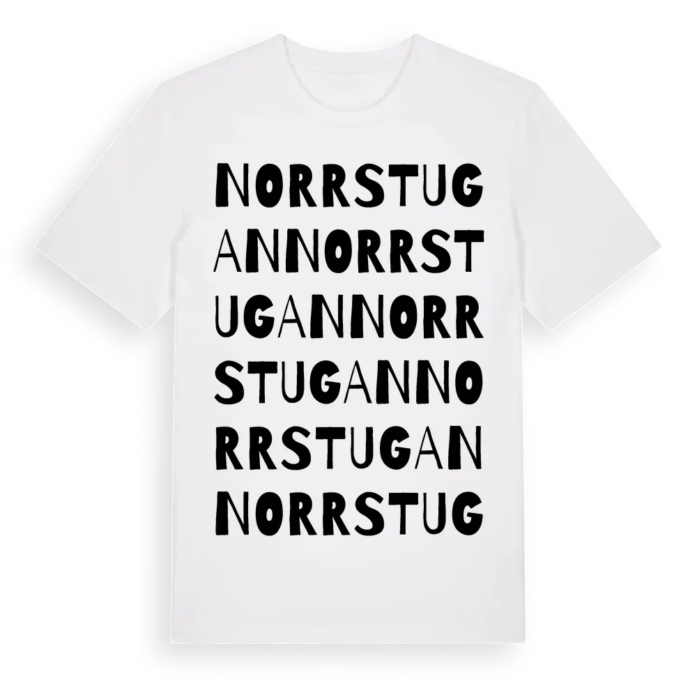 Norrstugan ordlek t-shirt är inspirerad av Norrstugan i Södermanlands län, Sverige. Tröjan är designad för dig som har en speciell koppling till platsen – oavsett om du bor här, har rötterna här eller bara älskar Norrstugan.