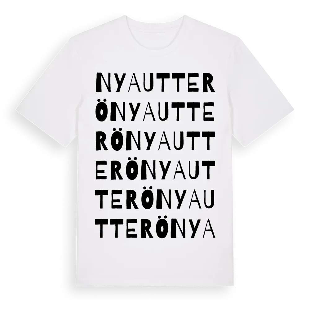 Nya Utterö ordlek t-shirt är inspirerad av Nya Utterö i Södermanlands län, Sverige. Tröjan är designad för dig som har en speciell koppling till platsen – oavsett om du bor här, har rötterna här eller bara älskar Nya Utterö.