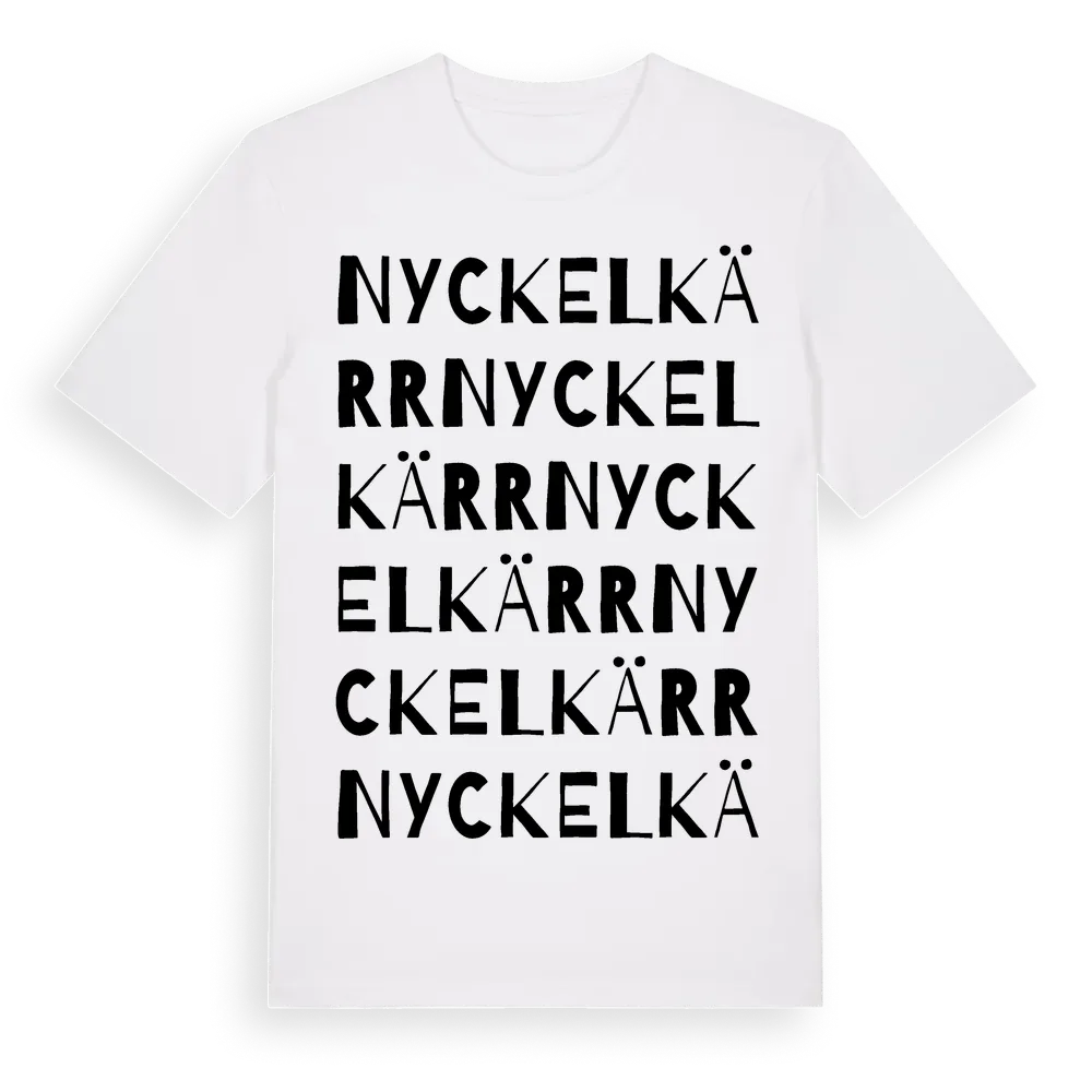 Nyckelkärr ordlek t-shirt är inspirerad av Nyckelkärr i Södermanlands län, Sverige. Tröjan är designad för dig som har en speciell koppling till platsen – oavsett om du bor här, har rötterna här eller bara älskar Nyckelkärr.