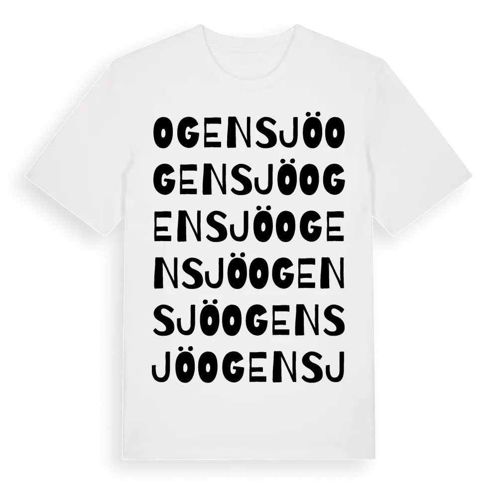 En ordlek byggd på Ogensjös namn. Subtilt och klurig – ett motiv som bara de som verkligen känner platsen fullt ut förstår. Premium bomull, unisex – från Ogensjö i Södermanlands län.