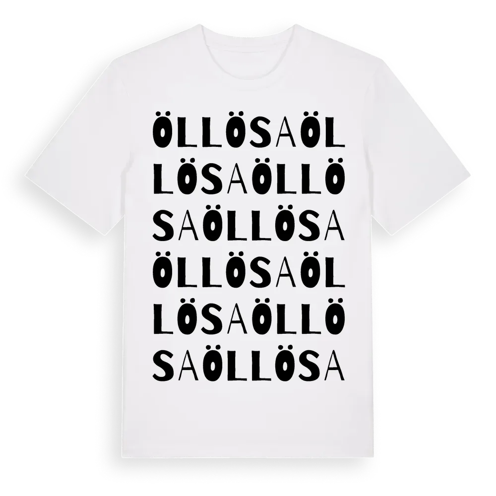En ordlek byggd på Öllösas namn. Subtilt och klurig – ett motiv som bara de som verkligen känner platsen fullt ut förstår. Premium bomull, unisex – från byn Öllösa i Södermanlands län.