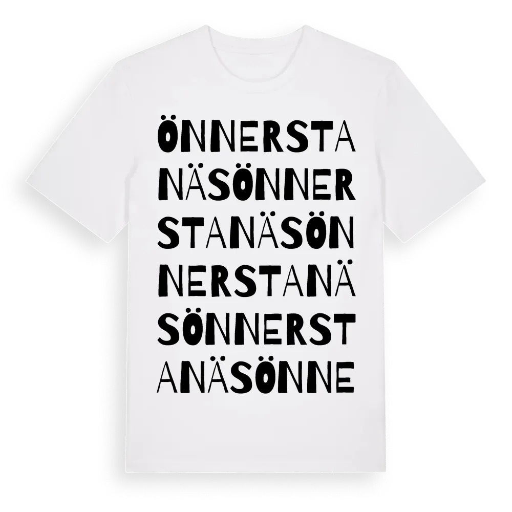 Önnerstanäs ordlek t-shirt är inspirerad av Önnerstanäs i Södermanlands län, Sverige. Tröjan är designad för dig som har en speciell koppling till platsen – oavsett om du bor här, har rötterna här eller bara älskar Önnerstanäs.
